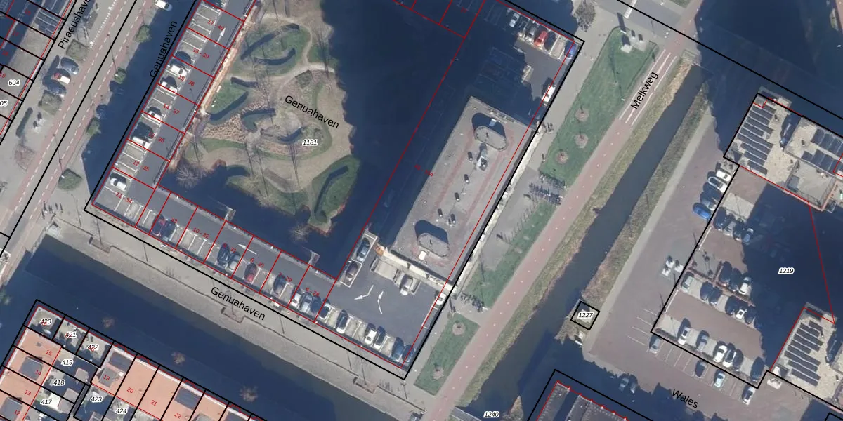 Het perceel waarop Genuahaven 76 staat heeft een oppervlakte van 7825 m². Dit is een zeer groot perceel. De perceeloppervlakte wordt geregistreerd door het Kadaster. Gedetailleerde informatie over de maten van dit perceel kunt u vinden in het rapport Kadastrale kaart met maatvoering van Genuahaven 76.