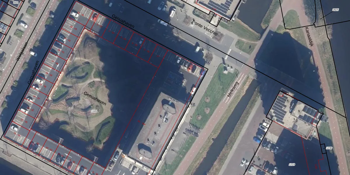Het perceel waarop Genuahaven 87 staat heeft een oppervlakte van 7825 m². Dit is een zeer groot perceel. De perceeloppervlakte wordt geregistreerd door het Kadaster. Gedetailleerde informatie over de maten van dit perceel kunt u vinden in het rapport Kadastrale kaart met maatvoering van Genuahaven 87.