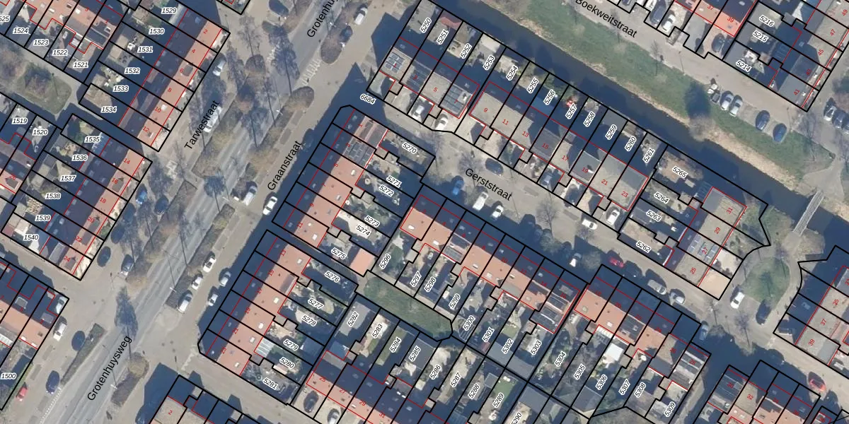 Gebruik de zoekbalk of klik op een perceel voor informatie over de adressen binnen dit perceel.