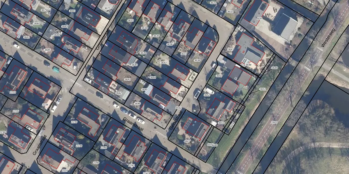 Gebruik de zoekbalk of klik op een perceel voor informatie over de adressen binnen dit perceel.