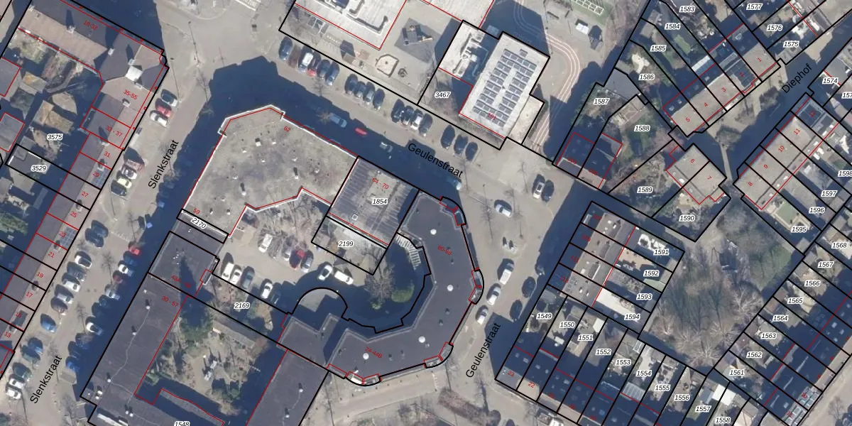 Het perceel waarop Geulenstraat 82 staat heeft een oppervlakte van 1187 m². Dit is een zeer groot perceel. De perceeloppervlakte wordt geregistreerd door het Kadaster. Gedetailleerde informatie over de maten van dit perceel kunt u vinden in het rapport Kadastrale kaart met maatvoering van Geulenstraat 82.
