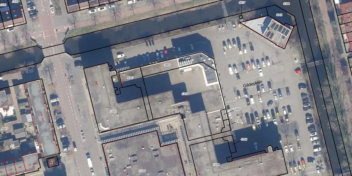 Het perceel waarop Gildeplein 119 staat heeft een oppervlakte van 1383 m². Dit is een zeer groot perceel. De perceeloppervlakte wordt geregistreerd door het Kadaster. Gedetailleerde informatie over de maten van dit perceel kunt u vinden in het rapport Kadastrale kaart met maatvoering van Gildeplein 119.