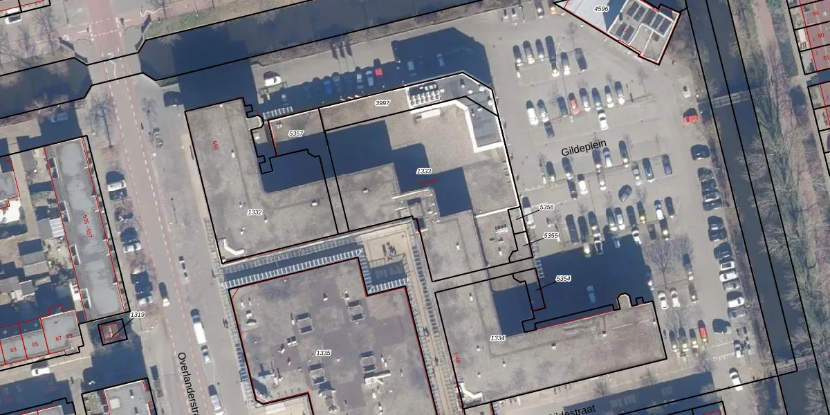 Het perceel waarop Gildeplein 141 staat heeft een oppervlakte van 1383 m². Dit is een zeer groot perceel. De perceeloppervlakte wordt geregistreerd door het Kadaster. Gedetailleerde informatie over de maten van dit perceel kunt u vinden in het rapport Kadastrale kaart met maatvoering van Gildeplein 141.