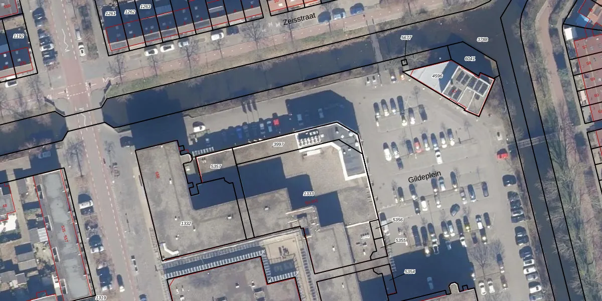 Het perceel waarop Gildeplein 201 staat heeft een oppervlakte van 1383 m². Dit is een zeer groot perceel. De perceeloppervlakte wordt geregistreerd door het Kadaster. Gedetailleerde informatie over de maten van dit perceel kunt u vinden in het rapport Kadastrale kaart met maatvoering van Gildeplein 201.