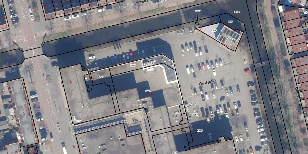 Het perceel waarop Gildeplein 313 staat heeft een oppervlakte van 1383 m². Dit is een zeer groot perceel. De perceeloppervlakte wordt geregistreerd door het Kadaster. Gedetailleerde informatie over de maten van dit perceel kunt u vinden in het rapport Kadastrale kaart met maatvoering van Gildeplein 313.