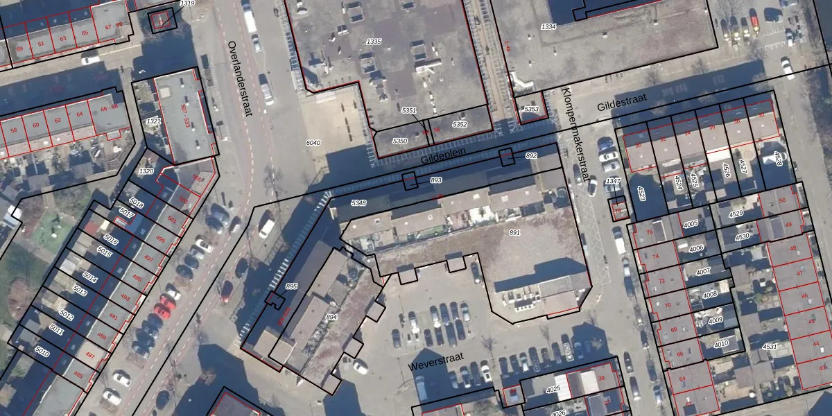 Het perceel waarop Gildeplein 8 staat heeft een oppervlakte van 1255 m². Dit is een zeer groot perceel. De perceeloppervlakte wordt geregistreerd door het Kadaster. Gedetailleerde informatie over de maten van dit perceel kunt u vinden in het rapport Kadastrale kaart met maatvoering van Gildeplein 8.
