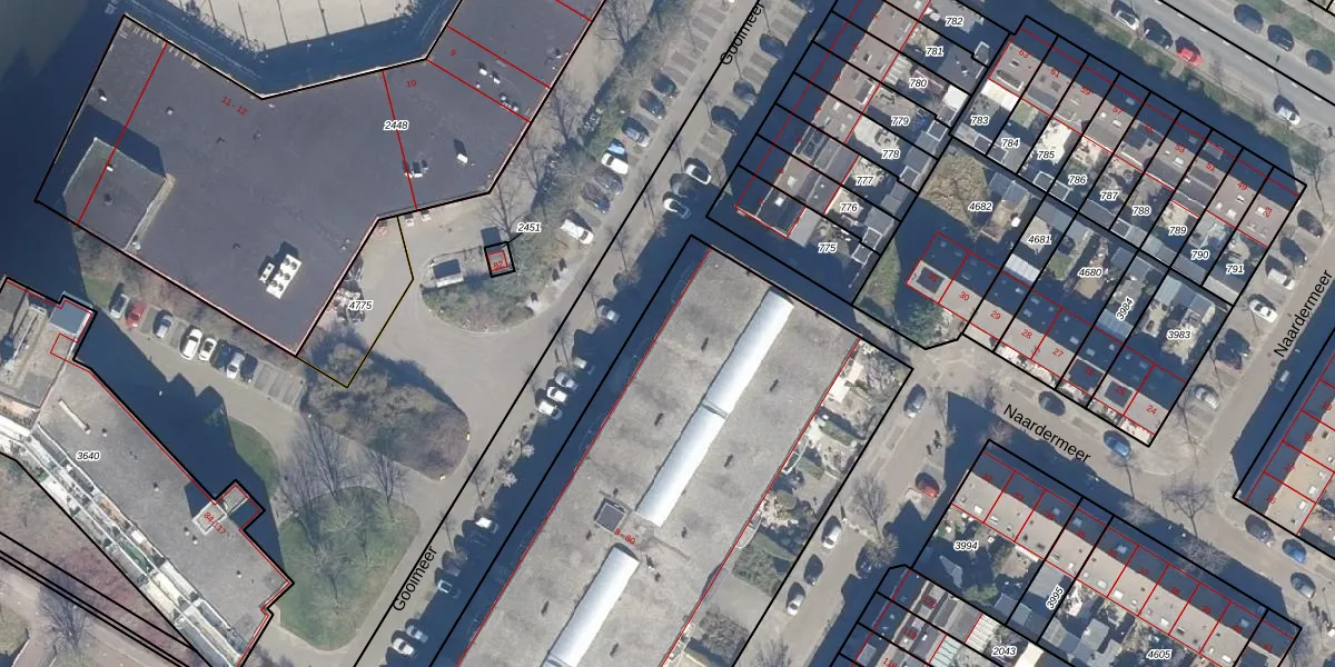 Het perceel waarop Gooimeer 20 staat heeft een oppervlakte van 3694 m². Dit is een zeer groot perceel. De perceeloppervlakte wordt geregistreerd door het Kadaster. Gedetailleerde informatie over de maten van dit perceel kunt u vinden in het rapport Kadastrale kaart met maatvoering van Gooimeer 20.