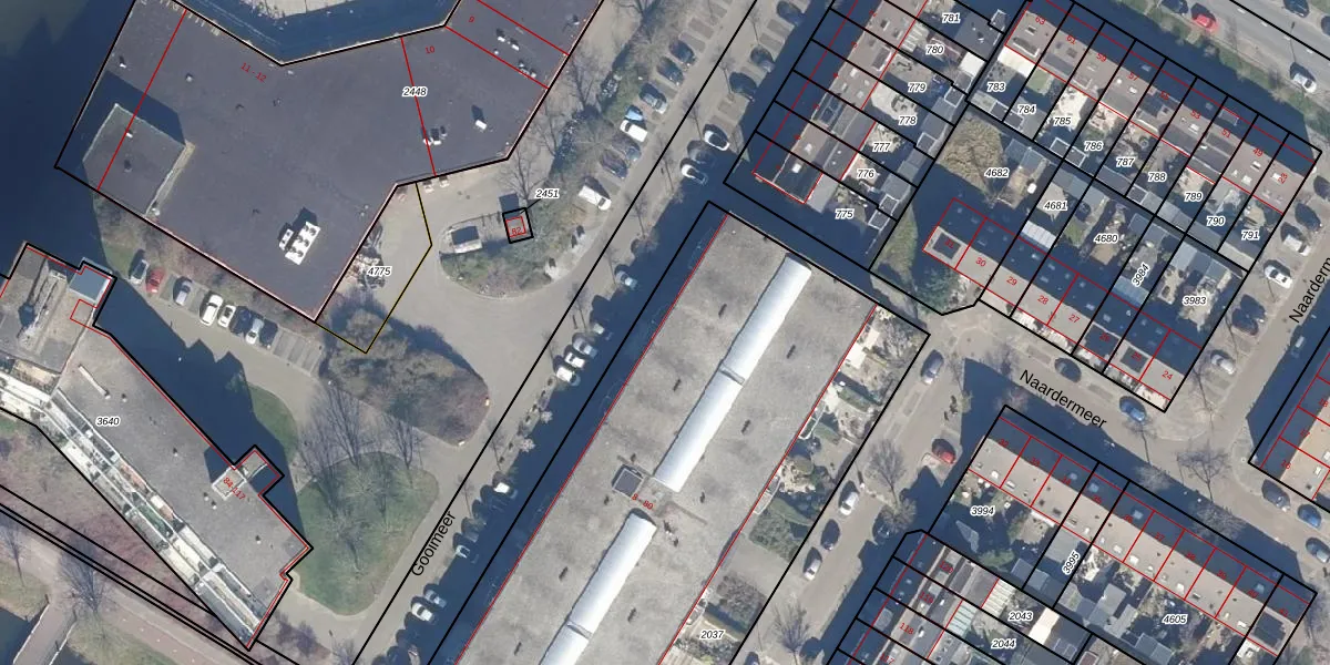Het perceel waarop Gooimeer 25 staat heeft een oppervlakte van 3694 m². Dit is een zeer groot perceel. De perceeloppervlakte wordt geregistreerd door het Kadaster. Gedetailleerde informatie over de maten van dit perceel kunt u vinden in het rapport Kadastrale kaart met maatvoering van Gooimeer 25.