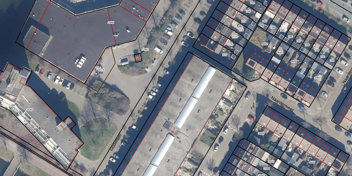 Het perceel waarop Gooimeer 26 staat heeft een oppervlakte van 3694 m². Dit is een zeer groot perceel. De perceeloppervlakte wordt geregistreerd door het Kadaster. Gedetailleerde informatie over de maten van dit perceel kunt u vinden in het rapport Kadastrale kaart met maatvoering van Gooimeer 26.
