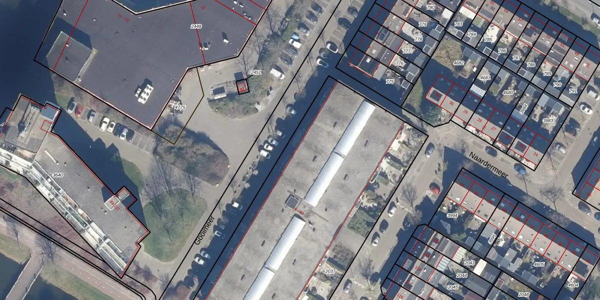 Het perceel waarop Gooimeer 30 staat heeft een oppervlakte van 3694 m². Dit is een zeer groot perceel. De perceeloppervlakte wordt geregistreerd door het Kadaster. Gedetailleerde informatie over de maten van dit perceel kunt u vinden in het rapport Kadastrale kaart met maatvoering van Gooimeer 30.