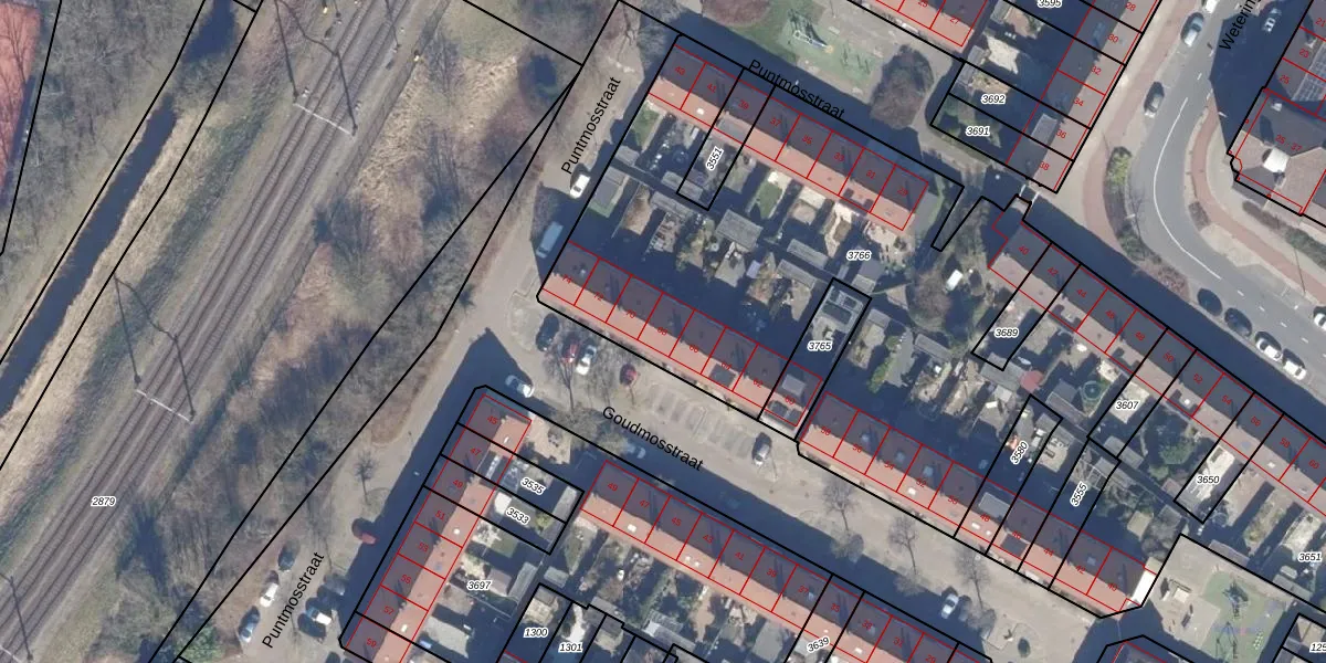 Het perceel waarop Goudmosstraat 68 staat heeft een oppervlakte van 3326 m². Dit is een zeer groot perceel. De perceeloppervlakte wordt geregistreerd door het Kadaster. Gedetailleerde informatie over de maten van dit perceel kunt u vinden in het rapport Kadastrale kaart met maatvoering van Goudmosstraat 68.
