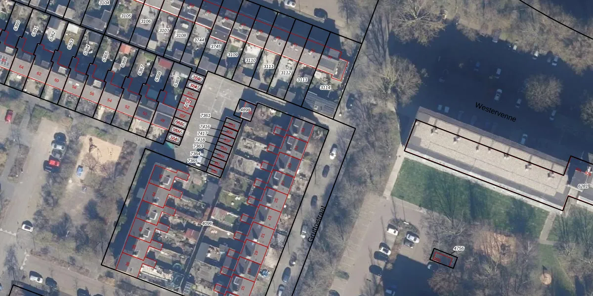 Het perceel waarop Gruttostraat 31 staat heeft een oppervlakte van 3104 m². Dit is een zeer groot perceel. De perceeloppervlakte wordt geregistreerd door het Kadaster. Gedetailleerde informatie over de maten van dit perceel kunt u vinden in het rapport Kadastrale kaart met maatvoering van Gruttostraat 31.