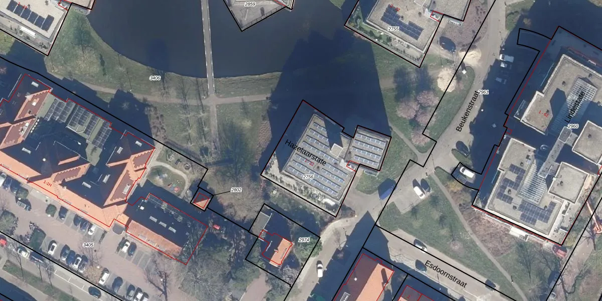 Het perceel waarop Hazelaarstate 15 staat heeft een oppervlakte van 857 m². Dit is een groot perceel. De perceeloppervlakte wordt geregistreerd door het Kadaster. Gedetailleerde informatie over de maten van dit perceel kunt u vinden in het rapport Kadastrale kaart met maatvoering van Hazelaarstate 15.