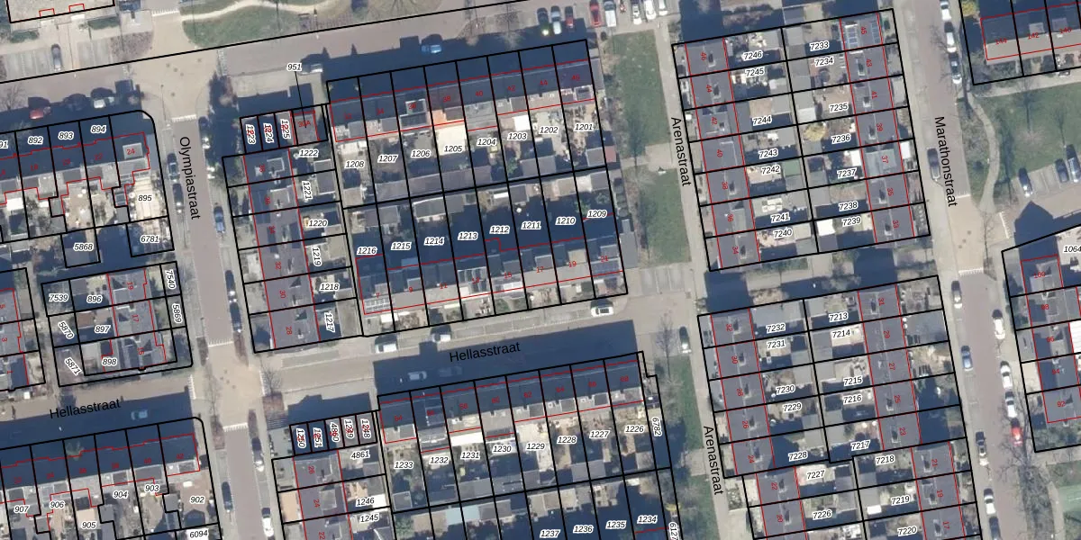 Gebruik de zoekbalk of klik op een perceel voor informatie over de adressen binnen dit perceel.