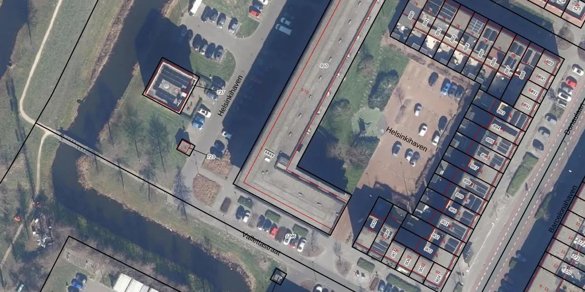 Het perceel waarop Helsinkihaven 63 staat heeft een oppervlakte van 1825 m². Dit is een zeer groot perceel. De perceeloppervlakte wordt geregistreerd door het Kadaster. Gedetailleerde informatie over de maten van dit perceel kunt u vinden in het rapport Kadastrale kaart met maatvoering van Helsinkihaven 63.