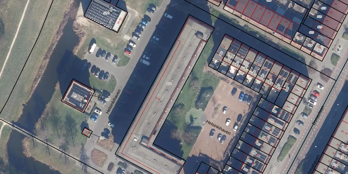Het perceel waarop Helsinkihaven 67 staat heeft een oppervlakte van 1825 m². Dit is een zeer groot perceel. De perceeloppervlakte wordt geregistreerd door het Kadaster. Gedetailleerde informatie over de maten van dit perceel kunt u vinden in het rapport Kadastrale kaart met maatvoering van Helsinkihaven 67.