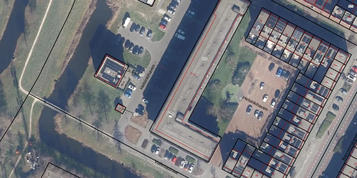 Het perceel waarop Helsinkihaven 8 staat heeft een oppervlakte van 1825 m². Dit is een zeer groot perceel. De perceeloppervlakte wordt geregistreerd door het Kadaster. Gedetailleerde informatie over de maten van dit perceel kunt u vinden in het rapport Kadastrale kaart met maatvoering van Helsinkihaven 8.