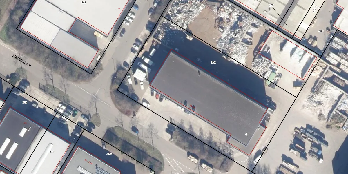 Het perceel waarop Hertzstraat 14 staat heeft een oppervlakte van 4525 m². Dit is een zeer groot perceel. De perceeloppervlakte wordt geregistreerd door het Kadaster. Gedetailleerde informatie over de maten van dit perceel kunt u vinden in het rapport Kadastrale kaart met maatvoering van Hertzstraat 14.