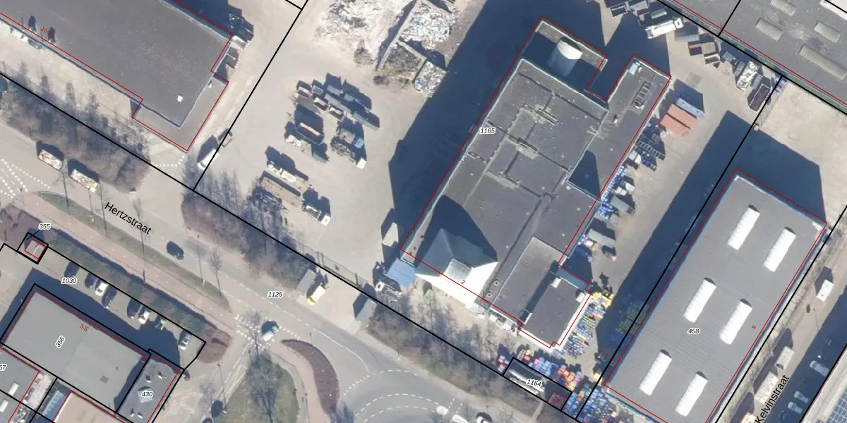 Het perceel waarop Hertzstraat 166 staat heeft een oppervlakte van 9940 m². Dit is een zeer groot perceel. De perceeloppervlakte wordt geregistreerd door het Kadaster. Gedetailleerde informatie over de maten van dit perceel kunt u vinden in het rapport Kadastrale kaart met maatvoering van Hertzstraat 166.