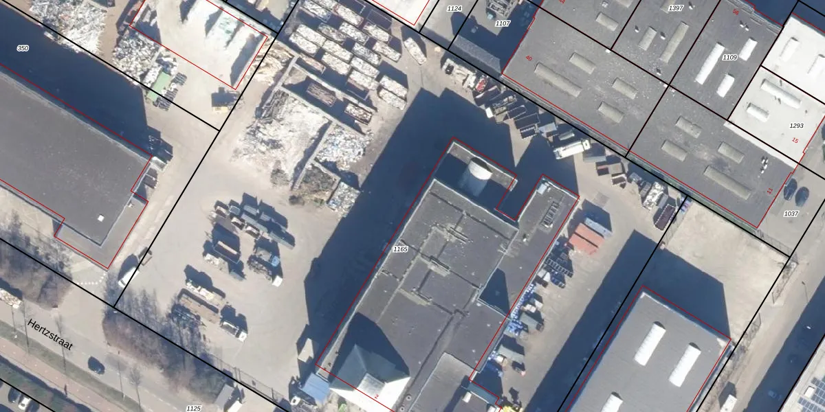 Het perceel waarop Hertzstraat 188 staat heeft een oppervlakte van 9940 m². Dit is een zeer groot perceel. De perceeloppervlakte wordt geregistreerd door het Kadaster. Gedetailleerde informatie over de maten van dit perceel kunt u vinden in het rapport Kadastrale kaart met maatvoering van Hertzstraat 188.