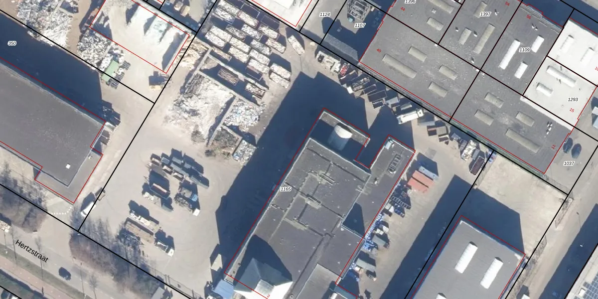 Het perceel waarop Hertzstraat 190 staat heeft een oppervlakte van 9940 m². Dit is een zeer groot perceel. De perceeloppervlakte wordt geregistreerd door het Kadaster. Gedetailleerde informatie over de maten van dit perceel kunt u vinden in het rapport Kadastrale kaart met maatvoering van Hertzstraat 190.