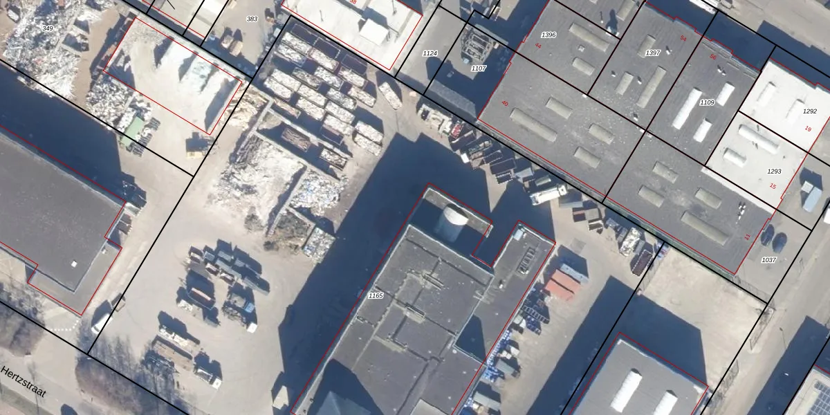 Het perceel waarop Hertzstraat 196 staat heeft een oppervlakte van 9940 m². Dit is een zeer groot perceel. De perceeloppervlakte wordt geregistreerd door het Kadaster. Gedetailleerde informatie over de maten van dit perceel kunt u vinden in het rapport Kadastrale kaart met maatvoering van Hertzstraat 196.