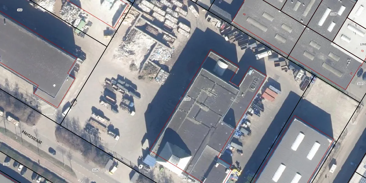 Het perceel waarop Hertzstraat 322 staat heeft een oppervlakte van 9940 m². Dit is een zeer groot perceel. De perceeloppervlakte wordt geregistreerd door het Kadaster. Gedetailleerde informatie over de maten van dit perceel kunt u vinden in het rapport Kadastrale kaart met maatvoering van Hertzstraat 322.