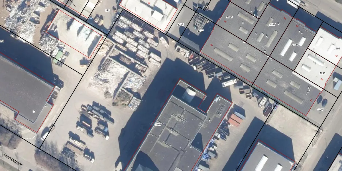 Het perceel waarop Hertzstraat 460 staat heeft een oppervlakte van 9940 m². Dit is een zeer groot perceel. De perceeloppervlakte wordt geregistreerd door het Kadaster. Gedetailleerde informatie over de maten van dit perceel kunt u vinden in het rapport Kadastrale kaart met maatvoering van Hertzstraat 460.