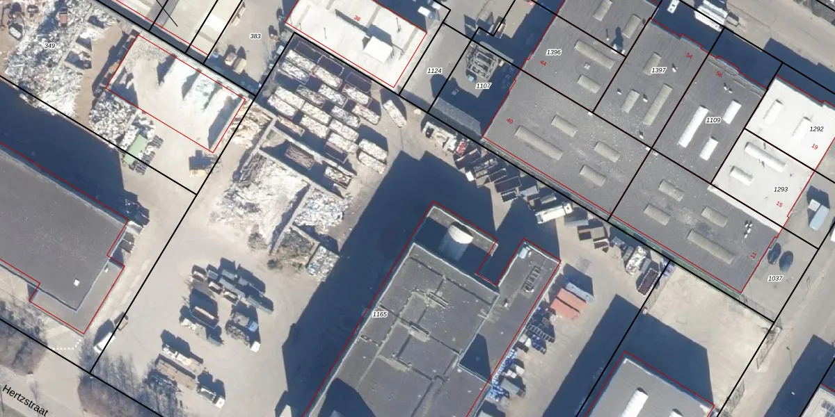 Het perceel waarop Hertzstraat 462 staat heeft een oppervlakte van 9940 m². Dit is een zeer groot perceel. De perceeloppervlakte wordt geregistreerd door het Kadaster. Gedetailleerde informatie over de maten van dit perceel kunt u vinden in het rapport Kadastrale kaart met maatvoering van Hertzstraat 462.