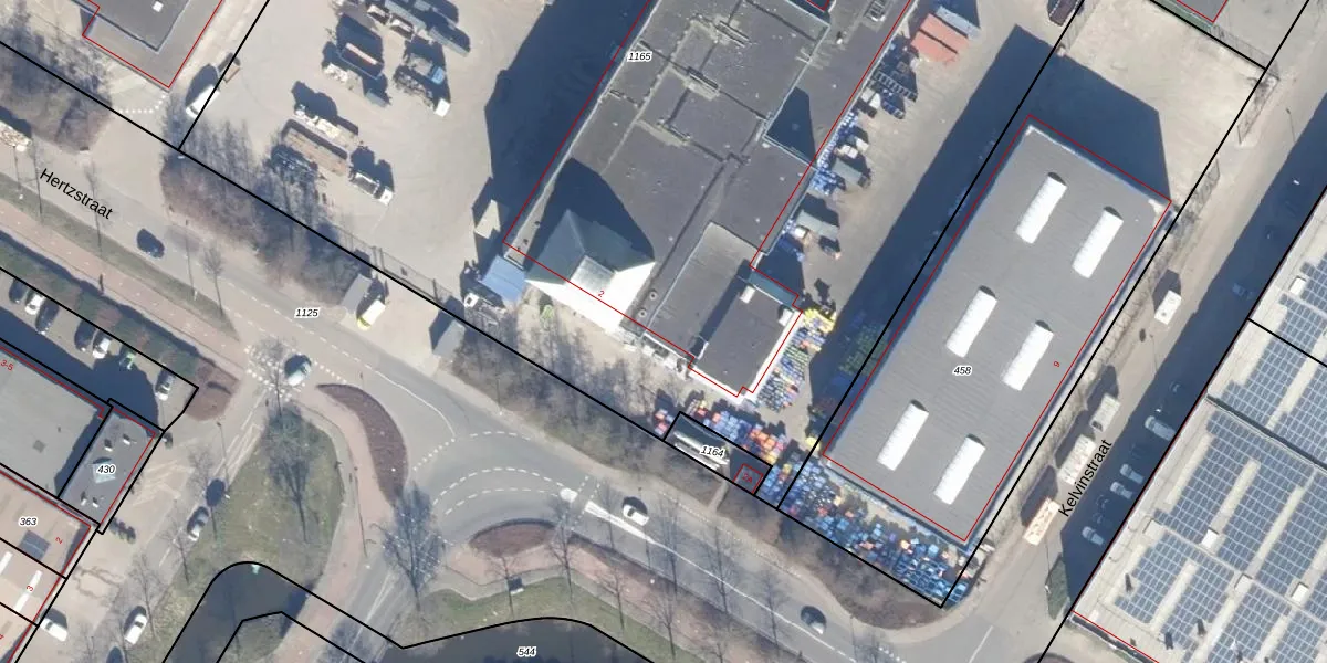 Het perceel waarop Hertzstraat 544 staat heeft een oppervlakte van 9940 m². Dit is een zeer groot perceel. De perceeloppervlakte wordt geregistreerd door het Kadaster. Gedetailleerde informatie over de maten van dit perceel kunt u vinden in het rapport Kadastrale kaart met maatvoering van Hertzstraat 544.