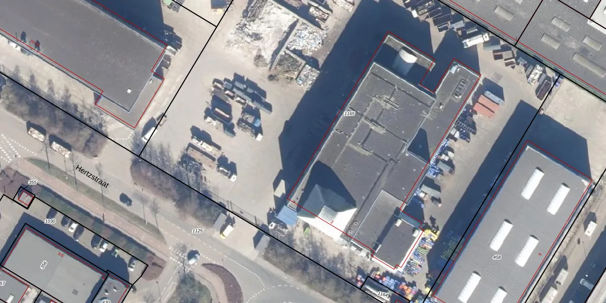 Het perceel waarop Hertzstraat 556 staat heeft een oppervlakte van 9940 m². Dit is een zeer groot perceel. De perceeloppervlakte wordt geregistreerd door het Kadaster. Gedetailleerde informatie over de maten van dit perceel kunt u vinden in het rapport Kadastrale kaart met maatvoering van Hertzstraat 556.
