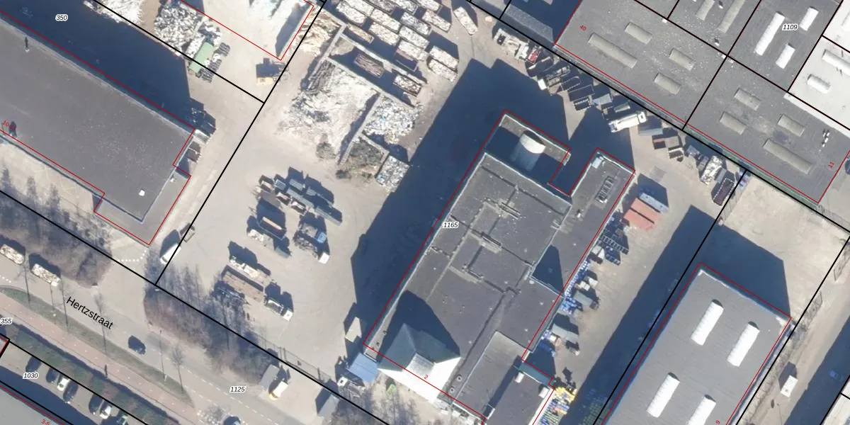 Het perceel waarop Hertzstraat 568 staat heeft een oppervlakte van 9940 m². Dit is een zeer groot perceel. De perceeloppervlakte wordt geregistreerd door het Kadaster. Gedetailleerde informatie over de maten van dit perceel kunt u vinden in het rapport Kadastrale kaart met maatvoering van Hertzstraat 568.