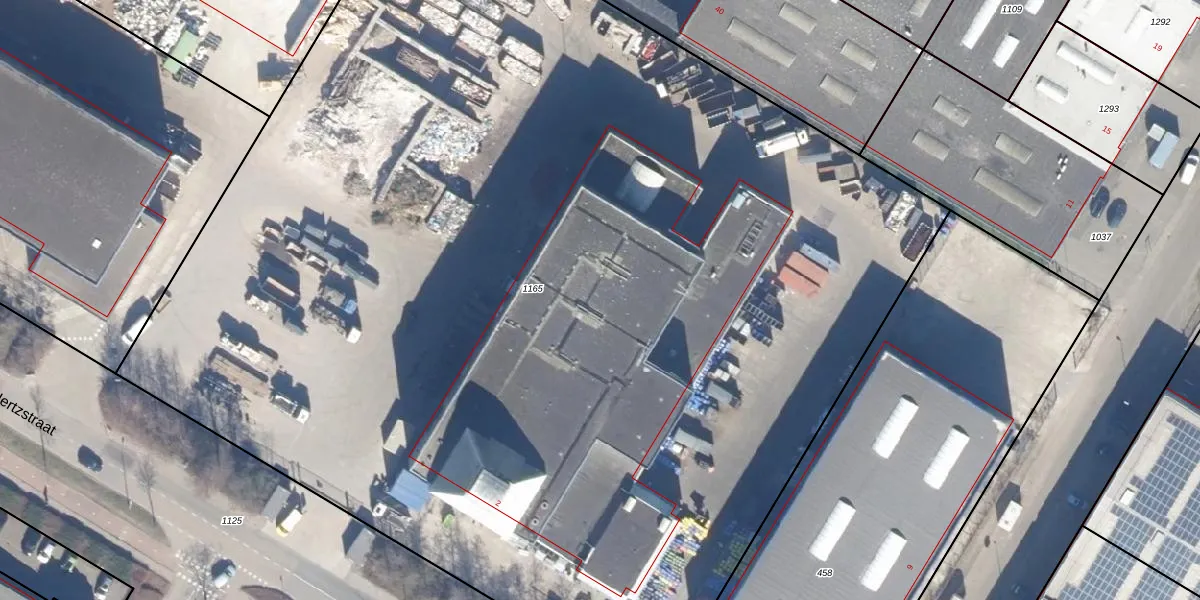 Het perceel waarop Hertzstraat 614 staat heeft een oppervlakte van 9940 m². Dit is een zeer groot perceel. De perceeloppervlakte wordt geregistreerd door het Kadaster. Gedetailleerde informatie over de maten van dit perceel kunt u vinden in het rapport Kadastrale kaart met maatvoering van Hertzstraat 614.