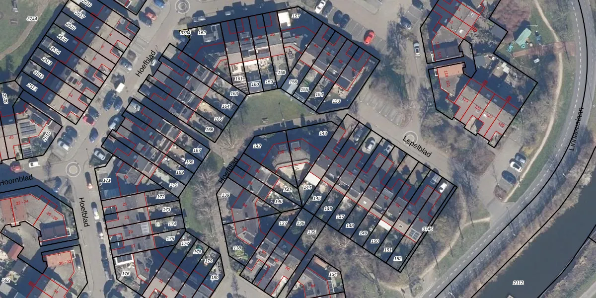 Het perceel waarop Hoefblad 102 staat heeft een oppervlakte van 194 m². Dit is een middelgroot perceel. De perceeloppervlakte wordt geregistreerd door het Kadaster. Gedetailleerde informatie over de maten van dit perceel kunt u vinden in het rapport Kadastrale kaart met maatvoering van Hoefblad 102.