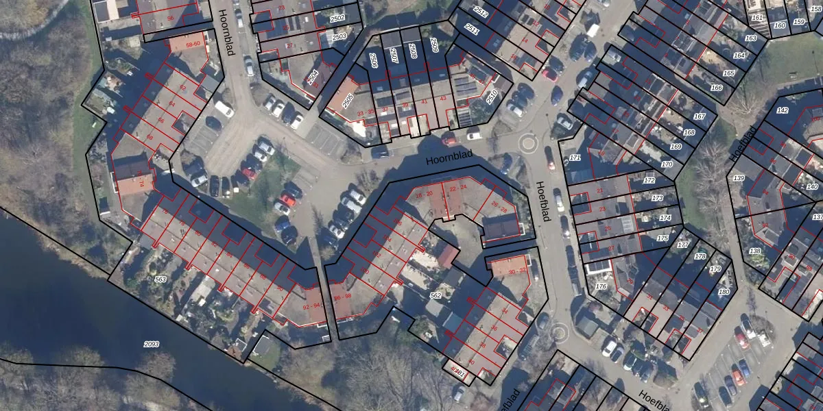Het perceel waarop Hoefblad 18 staat heeft een oppervlakte van 1724 m². Dit is een zeer groot perceel. De perceeloppervlakte wordt geregistreerd door het Kadaster. Gedetailleerde informatie over de maten van dit perceel kunt u vinden in het rapport Kadastrale kaart met maatvoering van Hoefblad 18.