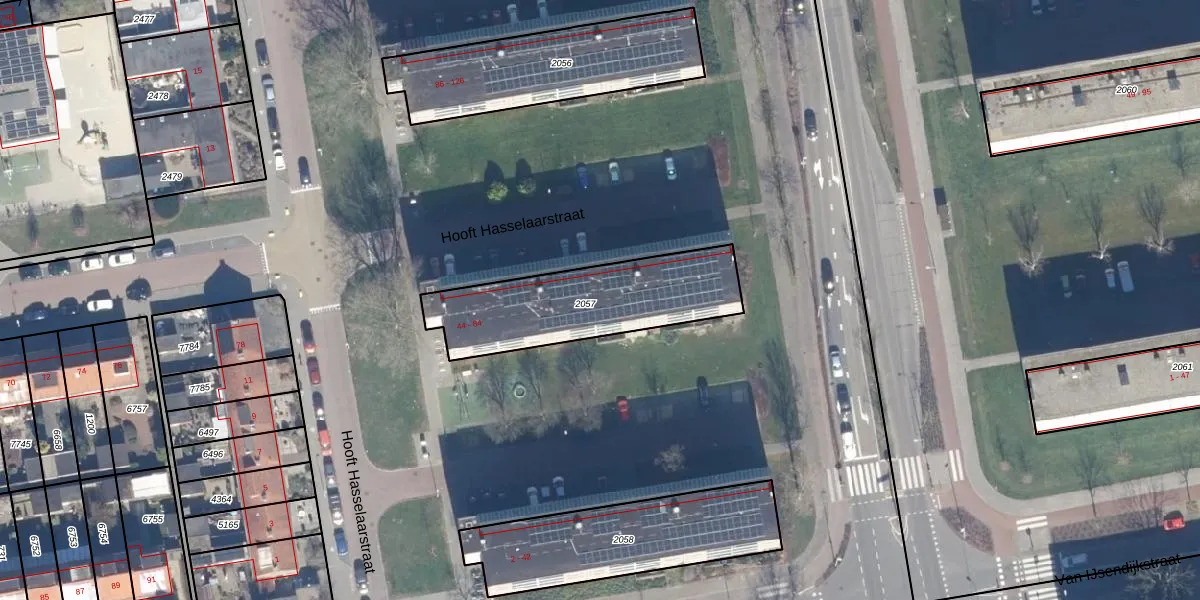 Het perceel waarop Hooft Hasselaarstraat 62 staat heeft een oppervlakte van 605 m². Dit is een groot perceel. De perceeloppervlakte wordt geregistreerd door het Kadaster. Gedetailleerde informatie over de maten van dit perceel kunt u vinden in het rapport Kadastrale kaart met maatvoering van Hooft Hasselaarstraat 62.