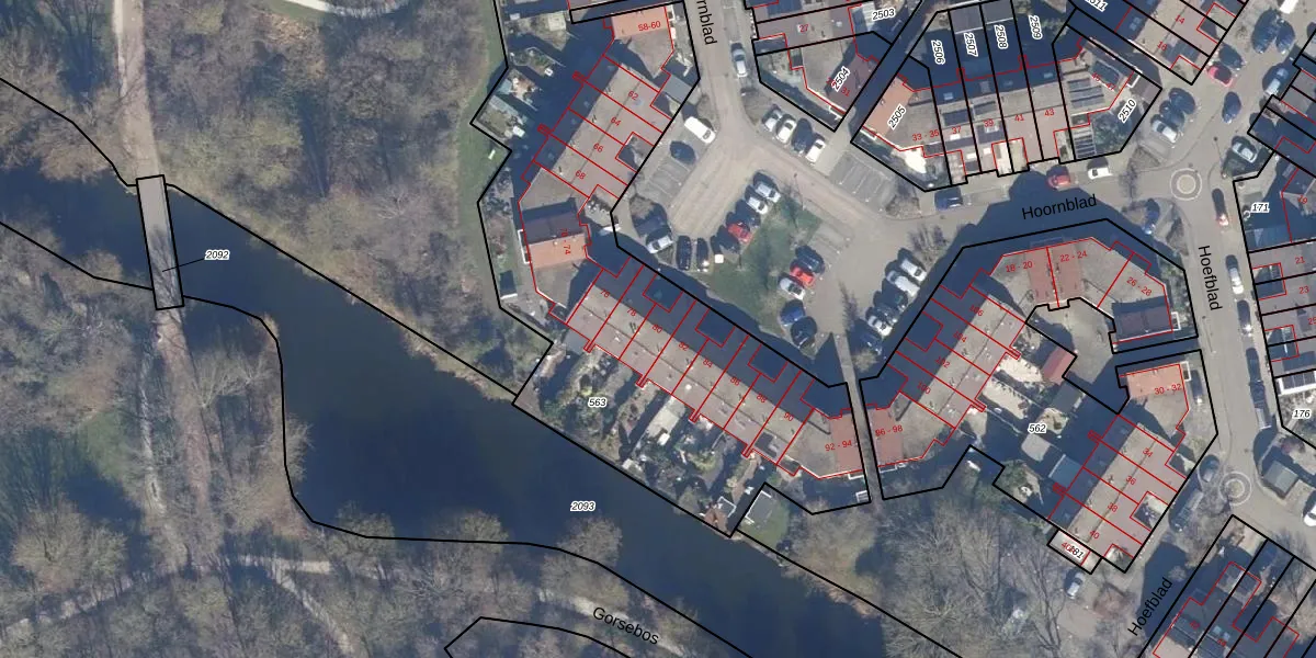 Het perceel waarop Hoornblad 80 staat heeft een oppervlakte van 3066 m². Dit is een zeer groot perceel. De perceeloppervlakte wordt geregistreerd door het Kadaster. Gedetailleerde informatie over de maten van dit perceel kunt u vinden in het rapport Kadastrale kaart met maatvoering van Hoornblad 80.