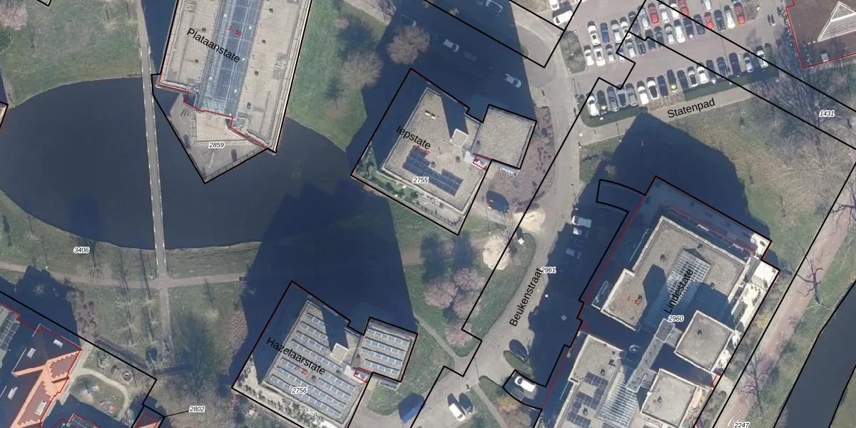 Het perceel waarop Iepstate 16 staat heeft een oppervlakte van 857 m². Dit is een groot perceel. De perceeloppervlakte wordt geregistreerd door het Kadaster. Gedetailleerde informatie over de maten van dit perceel kunt u vinden in het rapport Kadastrale kaart met maatvoering van Iepstate 16.