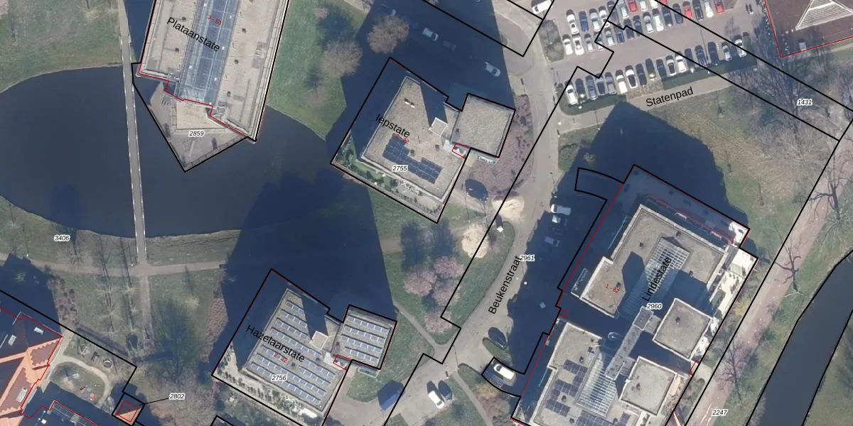 Het perceel waarop Iepstate 20 staat heeft een oppervlakte van 857 m². Dit is een groot perceel. De perceeloppervlakte wordt geregistreerd door het Kadaster. Gedetailleerde informatie over de maten van dit perceel kunt u vinden in het rapport Kadastrale kaart met maatvoering van Iepstate 20.