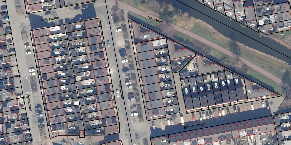 Gebruik de zoekbalk of klik op een perceel voor informatie over de adressen binnen dit perceel.