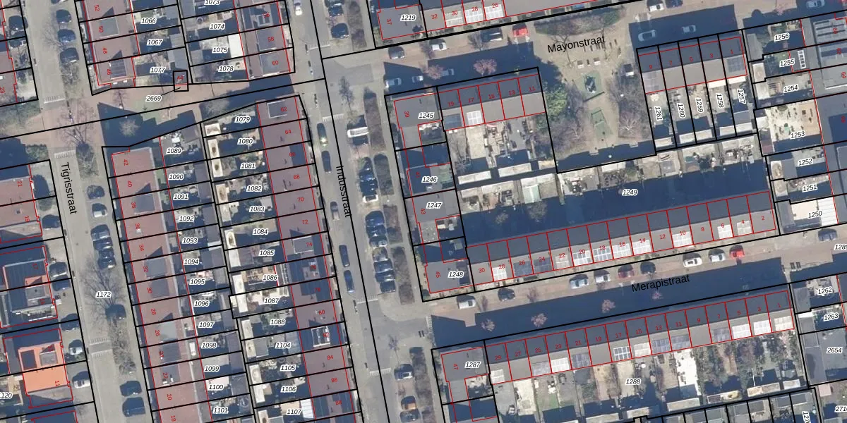 Gebruik de zoekbalk of klik op een perceel voor informatie over de adressen binnen dit perceel.
