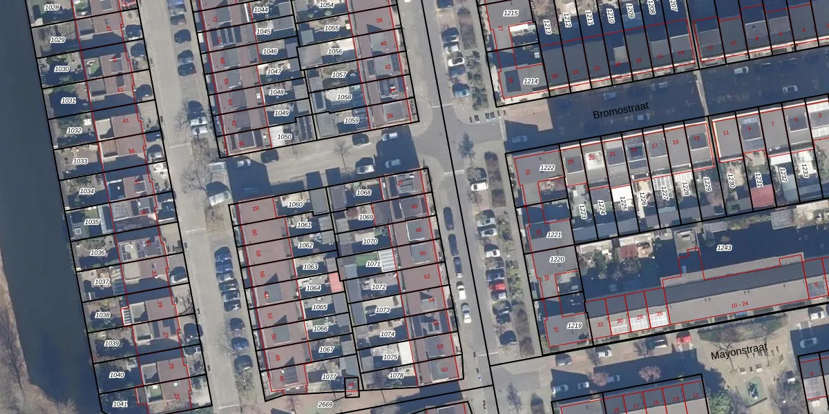 Gebruik de zoekbalk of klik op een perceel voor informatie over de adressen binnen dit perceel.