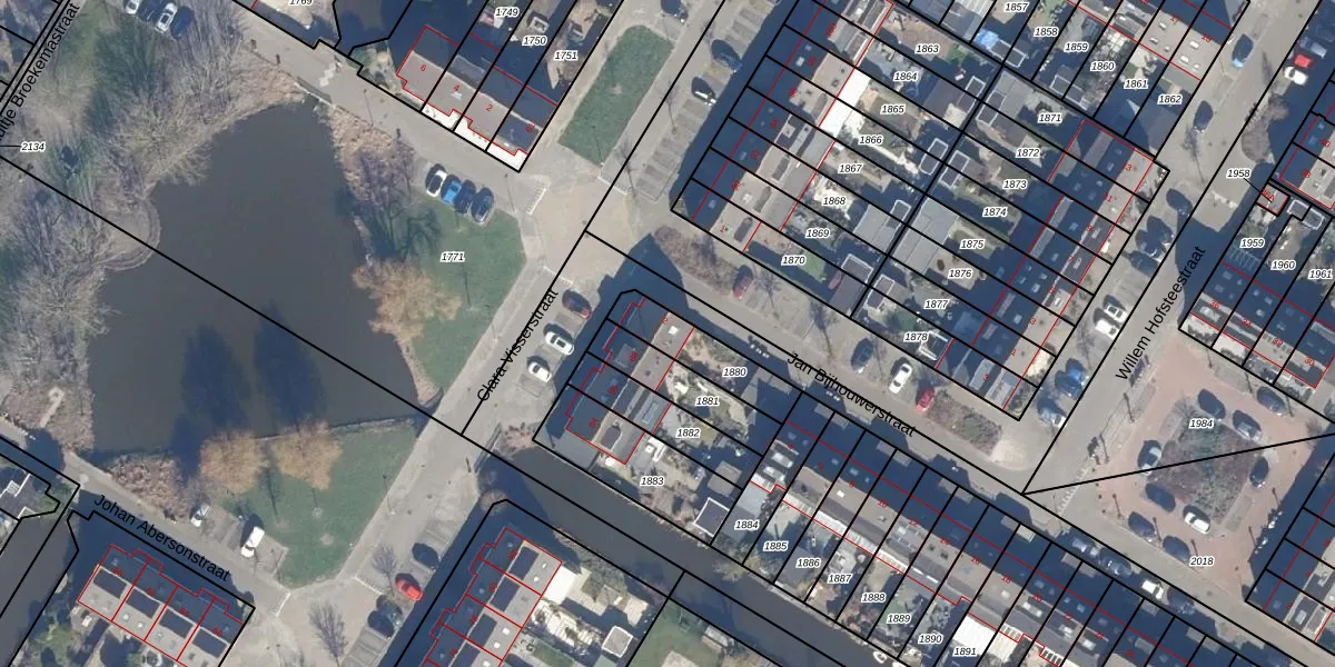 Het perceel waarop Jan Bijhouwerstraat 2 staat heeft een oppervlakte van 180 m². Dit is een middelgroot perceel. De perceeloppervlakte wordt geregistreerd door het Kadaster. Gedetailleerde informatie over de maten van dit perceel kunt u vinden in het rapport Kadastrale kaart met maatvoering van Jan Bijhouwerstraat 2.