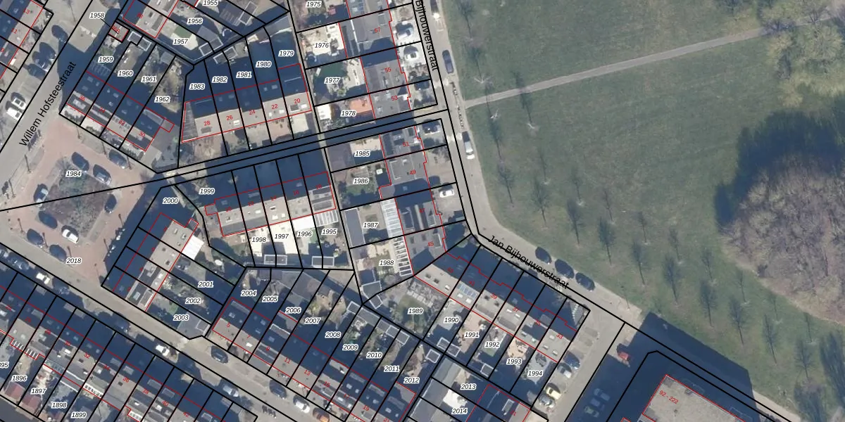 Het perceel waarop Jan Bijhouwerstraat 47 staat heeft een oppervlakte van 264 m². Dit is een middelgroot perceel. De perceeloppervlakte wordt geregistreerd door het Kadaster. Gedetailleerde informatie over de maten van dit perceel kunt u vinden in het rapport Kadastrale kaart met maatvoering van Jan Bijhouwerstraat 47.
