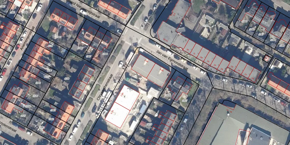 Het perceel waarop Jan van Egmondstraat 4-A staat heeft een oppervlakte van 2092 m². Dit is een zeer groot perceel. De perceeloppervlakte wordt geregistreerd door het Kadaster. Gedetailleerde informatie over de maten van dit perceel kunt u vinden in het rapport Kadastrale kaart met maatvoering van Jan van Egmondstraat 4-A.