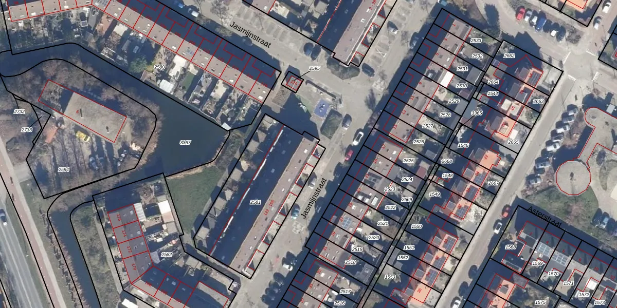 Het perceel waarop Jasmijnstraat 154 staat heeft een oppervlakte van 1111 m². Dit is een zeer groot perceel. De perceeloppervlakte wordt geregistreerd door het Kadaster. Gedetailleerde informatie over de maten van dit perceel kunt u vinden in het rapport Kadastrale kaart met maatvoering van Jasmijnstraat 154.