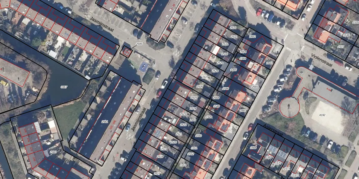 Het perceel waarop Jasmijnstraat 17 staat heeft een oppervlakte van 154 m². Dit is een middelgroot perceel. De perceeloppervlakte wordt geregistreerd door het Kadaster. Gedetailleerde informatie over de maten van dit perceel kunt u vinden in het rapport Kadastrale kaart met maatvoering van Jasmijnstraat 17.