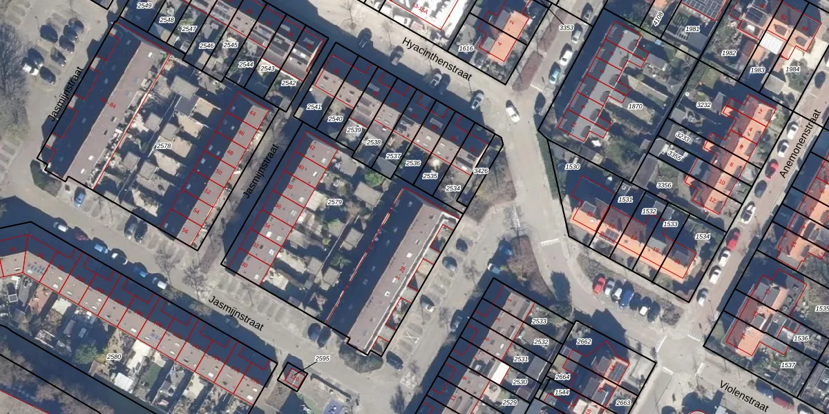 Het perceel waarop Jasmijnstraat 28 staat heeft een oppervlakte van 1764 m². Dit is een zeer groot perceel. De perceeloppervlakte wordt geregistreerd door het Kadaster. Gedetailleerde informatie over de maten van dit perceel kunt u vinden in het rapport Kadastrale kaart met maatvoering van Jasmijnstraat 28.