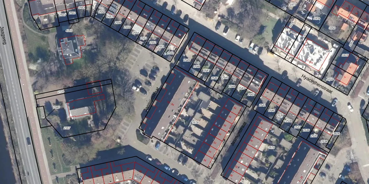 Het perceel waarop Jasmijnstraat 68 staat heeft een oppervlakte van 1767 m². Dit is een zeer groot perceel. De perceeloppervlakte wordt geregistreerd door het Kadaster. Gedetailleerde informatie over de maten van dit perceel kunt u vinden in het rapport Kadastrale kaart met maatvoering van Jasmijnstraat 68.