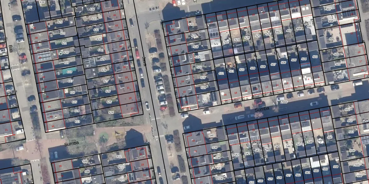 Gebruik de zoekbalk of klik op een perceel voor informatie over de adressen binnen dit perceel.